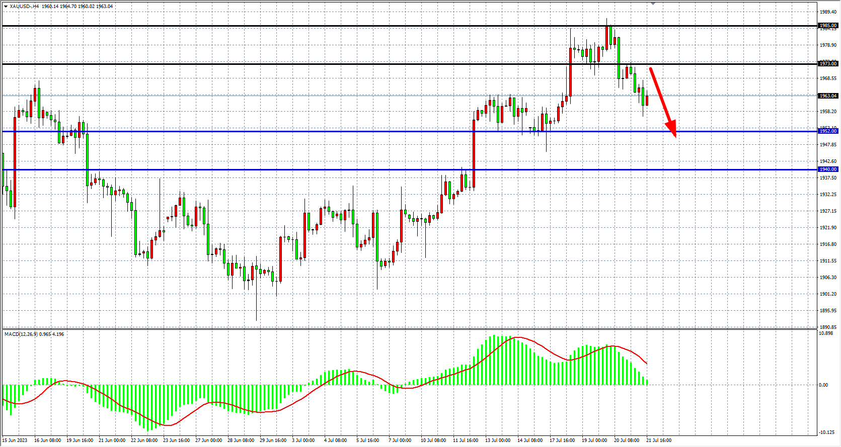 交易策略:1973 下方看跌,目标 1952 1940